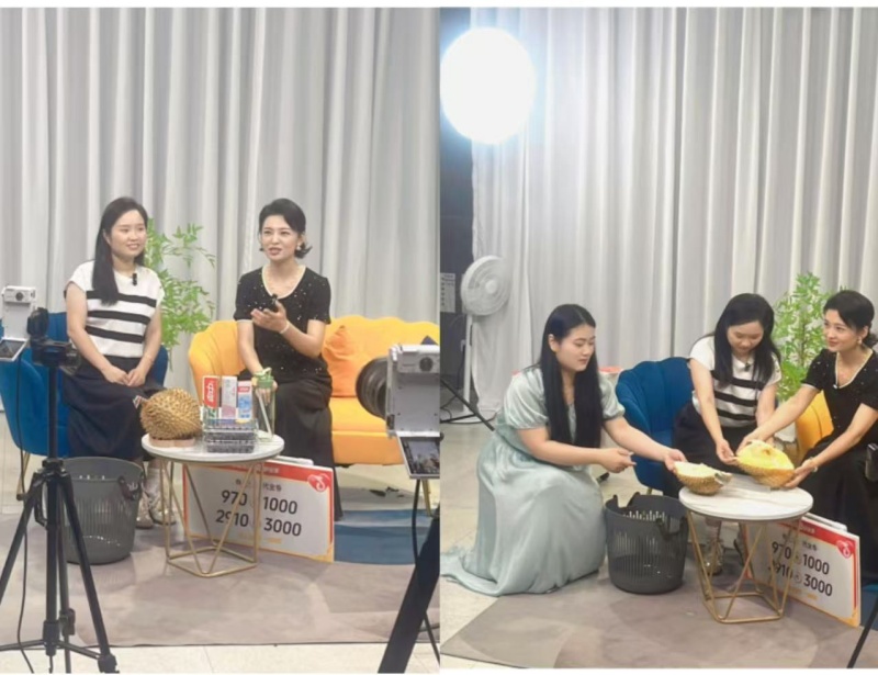 營(yíng)銷官魏杰從商之都的發(fā)展歷程、企業(yè)理念娓娓道來(lái),逐步深入到品牌核心價(jià)值,同時(shí)也重點(diǎn)推薦了商之都推出的大額消費(fèi)券,優(yōu)惠力度誠(chéng)意滿滿。在談到紅府超市時(shí),魏杰也如數(shù)家珍,將每款產(chǎn)品的特色亮點(diǎn)生動(dòng)呈現(xiàn)。最令人眼前一亮的當(dāng)屬現(xiàn)場(chǎng)剝榴蓮環(huán)節(jié),魏杰手法嫻熟,將金黃軟糯的果肉展示給屏幕前的觀眾,還不忘分享挑選優(yōu)質(zhì)榴蓮的小竅門,瞬間拉近了與消費(fèi)者的距離。