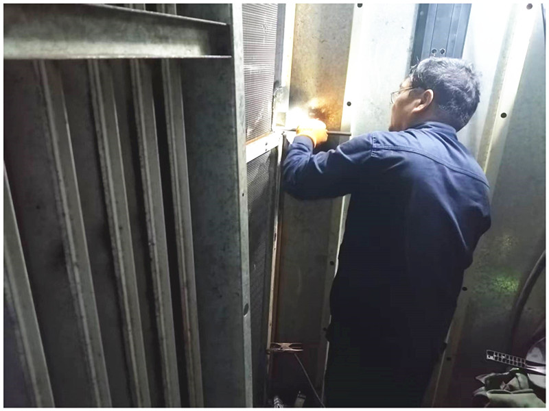 由于冷凝水管道銹蝕滲漏位置較為特殊,縫隙狹窄,給搶修工作帶來難度,后勤人員經(jīng)認(rèn)真研究方案,明確分工,各司其職,拆卸、水排放、焊接、清理施工現(xiàn)場,滅火器配置。經(jīng)過3個(gè)多小時(shí)的奮戰(zhàn),終于成功完成了管道滲漏的搶修工作。他們顧不上擦拭額頭汗水,又立即對修復(fù)后的管道進(jìn)行注水、試壓和檢查,確保無滲漏隱患后,才開啟中央空調(diào)機(jī)組的運(yùn)行。