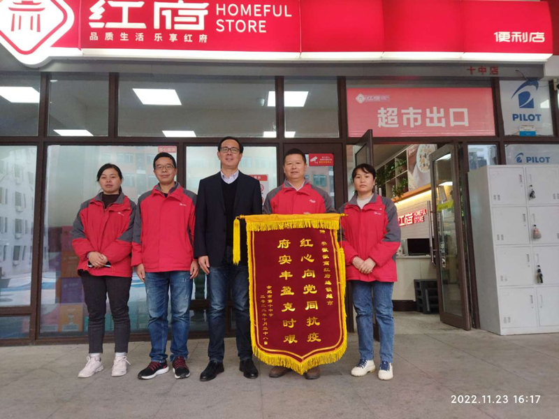 2022年11月23日,合肥十中召開抗疫保供表彰大會(huì),紅府超市合肥十中店榮獲抗疫保供模范單位稱號(hào)。