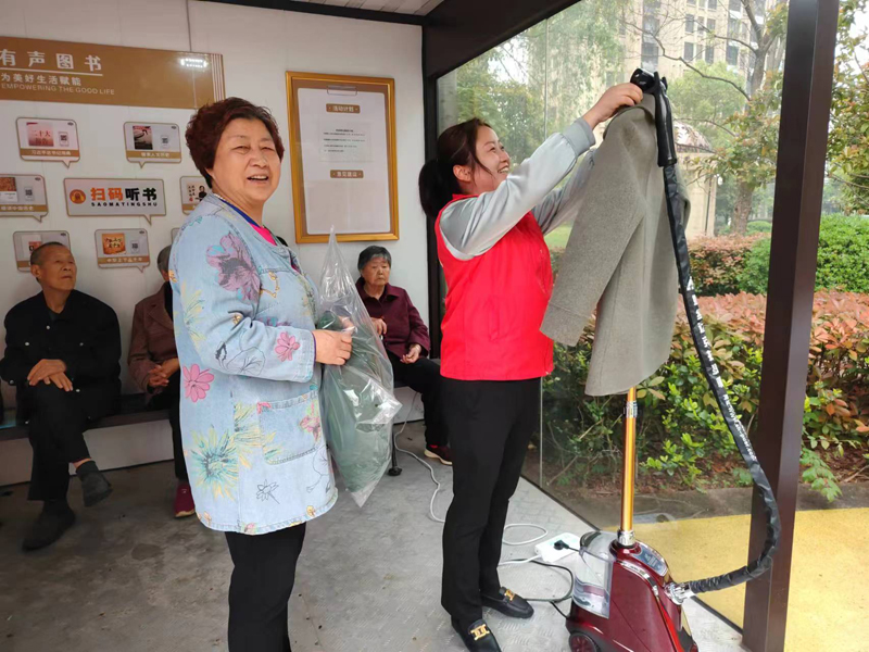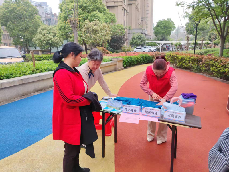 4月12日上午,六安商廈黨支部聯(lián)合九墩塘社區(qū)黨總支來到紫御府小區(qū)鄰里驛站,黨建品牌“V服務”提供上門服務,為社區(qū)居民提供毛衫除球、服裝熨燙、皮具保養(yǎng)等免費服務。