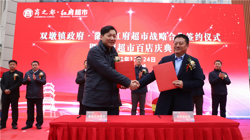 開(kāi)業(yè)儀式前,雙墩鎮(zhèn)鎮(zhèn)長(zhǎng)王世德與紅府超市董事長(zhǎng)王正共同簽訂了戰(zhàn)略合作協(xié)議,雙方將聯(lián)手共同推動(dòng)合作向縱深發(fā)展,紅府超市將在雙墩鎮(zhèn)打造更多的鎮(zhèn)企合作示范店并加快紅府雙墩農(nóng)業(yè)基地建設(shè),為當(dāng)?shù)鼐用駧?lái)更多便利和實(shí)惠。
